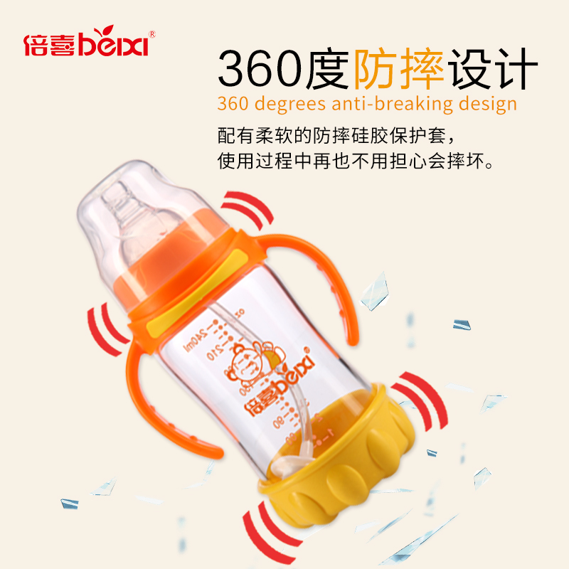 150ml宽口防摔高硼硅玻璃奶瓶